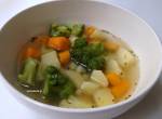 Zupa krem z brokuła 257świeżego lub mrożonego brokułu 1 marchewka 1/2 pietruszki kawałek selera korzeniowego 1/2 laski selera naciowego 2 średnie ziemniaki pieprz susz warzywny warzywko bez soli skrzydełko z kurczaka woda Sposób przygotowania: Jeśli brokuł jest świeży dzielimy go na różyczki, myjemy. Wszystkie pozostałe warzywa obieramy, kroimy na mniejsze części i myjemy. Wszystko wrzucamy do garnka wraz z umytym skrzydełkiem z kurczaka