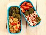 Jedzonko do pracy #39 238śniadania, lunchu i przekąski, którą zazwyczaj zjadam po południu, pod koniec dnia. Śniadanie : Roladki z szynki z kremowym serkiem i suszonymi pomidorami Lunch : Stir-fry z kurczaka z papryką Przekąska : Brokuły i pomidory Smacznego
