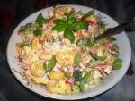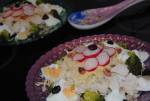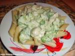 Sałatka z kurczakiem i tortellini 896pieczona pierś z kurczaka* pół brokuła ugotowanego al dente* papryka czerwona * 2 szklanki ugotowanego tortellini o dowolnym nadzieniu* sól, pieprz do smaku* dwie łyżki majonezu Przygotowanie :Brokuł oddzielić na mniejsze różyczki, kurczaka pokroić w kostkę, a paprykę najlepiej w cienkie paseczki. Składniki sałatki połączyć, przyprawić. Dodać majonez i wymieszać. Odstawić do lodówki na pół godziny