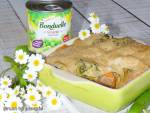 Cannelloni mięsne z brokułem i groszkiem 297zapiekania FARSZ: 250g mielonego mięsa wieprzowego - choć tak naprawdę rodzaj mięsa zależy wyłącznie od fantazji kucharza: z kurczaka, z indyka, wieprzowe - do wyboru do koloru :) 1 puszka groszku tradycyjnego Bonduelle porcja na raz [212ml] 2 marchewki - małe 2 jaja - całe 1 brokuł - mały; korzeń do farszu, różyczki do zapieczenia z makaronem 1 łyżka sosu sojowego 1 łyżka sosu worcestershire kilka
