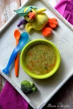 Zupka warzywna z kurczakiem, tymiankiem - od 10 miesiąca 267uczymy go poznawać nowe smaki, różnorodności konsystencji, przez co nabiera dobrych, zdrowych nawyków pokarmowych. SKŁADNIKI : różki brokuły 4 szt marchew 2 średnie pietruszkę koszeń 1 mały 2 małe ziemniaczki świeży tymianek 2 szczypty kawałeczek piersi z kurczaka łyżeczkę oleju rzepakowego SPOSÓB PRZYGOTOWANIA : Piersi z kurczaka kroimy w kawałeczki, gotujemy