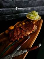 Wolno pieczone żeberka z holenderską sałatką z kapusty – klasyka mięsa i historii 72Wolno pieczone żeberka z miodem, sosem sojowym i papryką wędzoną – podane z klasyczną holenderską sałatką z kapusty, masła i octu. Wolno pieczone żeberka – smak, który wymaga