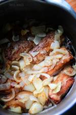 Żeberka w sosie cebulowym 137Prosty babciny przepis na pyszne duszone żeberka w sosie cebulowym. Miękkie, dobrze doprawione delikatne mięso w aromatycznym sosie z cebuli idealnie pasuje do kaszy, klusek, pampuchów lub ziemniaków. Czas przygotowania: 120 minut Ilość porcji: 4-6 osób Trudność przygotowania: łatwe Cena: przystępna SKŁADNIKI: 1,5 kg żeberek 5 dużych cebul 2 ząbki czosnku 1 łyżeczka(...)Cebulę kroimy w piórka i szklimy na złoty kolor. Zeszkloną cebulę przekładamy do garnka a na patelnię wlewamy szklankę wody i doprowadzamy do wrzenia, następnie przelewamy do cebuli. 2. Żeberka kroimy w paski na dwie lub trzy kości posypujemy solą, pieprzem i majerankiem. Smażymy na suchej patelni po cebuli z dwóch stron na złoty kolor i przekładamy do garnka